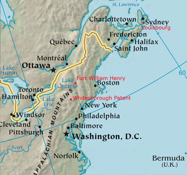 Fort William Henry - with acknowledgments to US Library of Congress. Click on the image to open a full detail 0.8 mb copy of the map; click that image to zoom to full size.